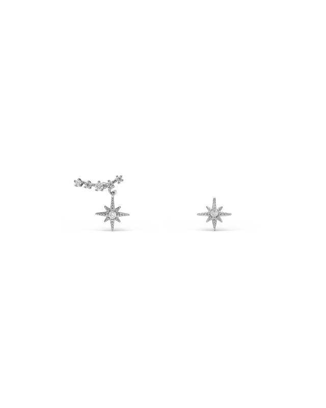 Orecchino a lobo in ottone con zirconi e pendente.